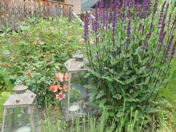 Au Carré des Dames les Eglantines dévoilent une insolente couleur aux cotés de l'indispensable sauge.